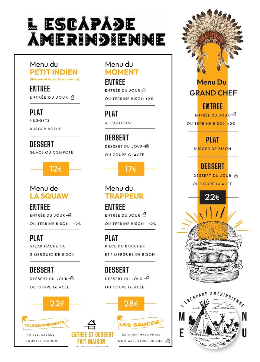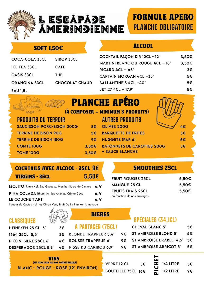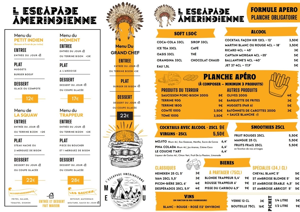 L'Escapade Amérindienne Menu